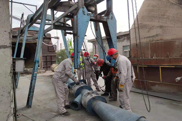 團隊是什么,是為了實現(xiàn)一個共同的目標而集合起來的人。 任何一個人的力量都是渺小的,只有融入團隊,只有與團隊一起奮斗,勁往一處使,你才能實現(xiàn)個人價值的最大化,你才能成就自己的卓越!伴隨副總經(jīng)理一聲令下,所有人員喊著豪邁的口號,配合吊機的力臂推動著奇重無比的噴煤管一點一點的前行。又一會功夫?qū)⒒剞D(zhuǎn)窯門緩緩調(diào)至檢修現(xiàn)場安全的位置。