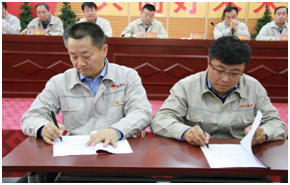 為了進一步明確權責,強化各級管理人員的責任意識,提高履職能力,會上,集團公司各級主管領導簽訂了《2019年經營管理目標責任書》和《2019年安全環保目標責任書》。