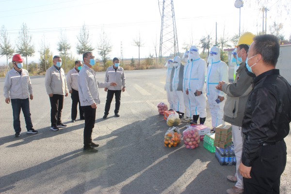 為提振士氣、鼓舞斗志,堅(jiān)決打贏疫情防控阻擊戰(zhàn),10月31日、11月1日,寧夏金昱元化工集團(tuán)股份有限公司總裁喬冠榮,監(jiān)事會主席郭復(fù)生,黨委副書記尚興,副總裁、固原片區(qū)總經(jīng)理王立軍,副總裁、青銅峽片區(qū)總經(jīng)理張立軍等領(lǐng)導(dǎo)組成慰問組,分別到固原片區(qū)和青銅峽片區(qū)各疫情防控卡點(diǎn)慰問奮戰(zhàn)在一線的防疫人員。