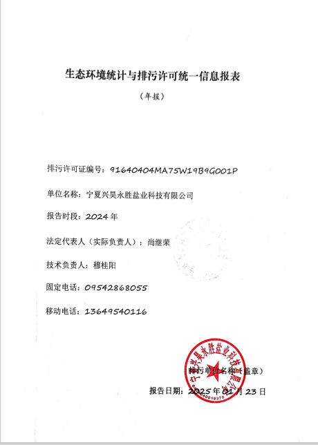 寧夏興昊永勝鹽業(yè)科技有限公司2024年排污許可執(zhí)行報告
